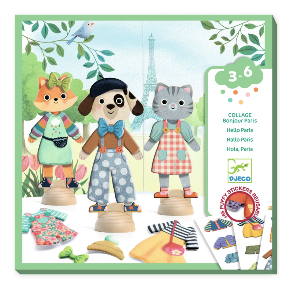 - Ahoj Paríž: Obliekanie 3 postavičiek odnímateľnými samolepkami (koláž)