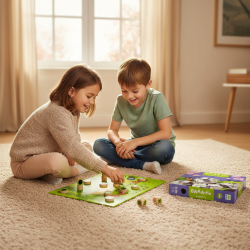 Baaa-tle je dynamická strategická spoločenská hra značky Djeco, v ktorej sa hráči snažia čo najrýchlejšie doviesť svoje ovce na lúku, no cesta nie je jednoduchá. Súperi sa môžu navzájom blokovať, plánovať taktické ťahy a premieňať každé kolo na napínavý súboj o víťazstvo. Jednoduché pravidlá sa naučia aj mladšie deti a hracia doba do 15 minút zaručuje, že sa hra stane hitom rodinných večerov alebo stretnutí s kamarátmi.Prečo si vybrať túto hru od Djeco:Vhodná pre deti od 6 rokov. Strategická hra vhodná pre celú rodinu. Krátke kolá s vysokým napätím. Možnosť blokovať súperove ovce a meniť priebeh hry. Tematika oviec a lúky priateľská pre deti. Kompaktné balenie vhodné aj na cesty. Pre 2 hráčov. Čo hra rozvíja u detí:Strategické a logické myslenie – plánovanie ťahov a reakcie na súperove rozhodnutia. Koncentrácia a predvídanie – sledovanie polohy figúrok a plánovanie ďalších krokov. Komunikácia a spoločná hra – hra s rodičmi, súrodencami alebo kamarátmi. Schopnosť zvládať výhru aj prehru – zdravý prístup počas súbojov. Obsah balenia:Herný plán, 6 obojstranných figúrok čiernych ovečiek, 6 obojstranných figúrok bielych ovečiek,2 špeciálne kocky. Pravidlá hry