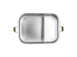 Deti môžu tento obedový box ovládať samé, pretože sa veľmi ľahko otvára a zatvára na pracku. Veľký obedový box má jednu pevnú prepážku, takže si vaše dieťa môže vychutnať napríklad zeleninu zvlášť a pečivo vedľa sa nezmočí. Tento odolný obedový box je vyrobený výhradne z nehrdzavejúcej ocele. Vďaka tomu neobsahuje žiadne škodlivé chemikálie a spĺňa všetky prísne normy vrátane LFGB (najprísnejšia legislatíva v oblasti potravinárstva v Európe).