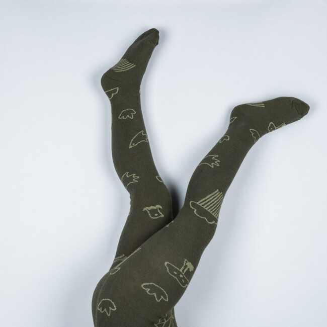 Detské tmavozelené bavlnené pančuchy Kreslená krajina