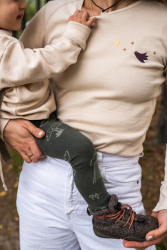Tmavozelené pančuchy s kreslenou krajinou sú vyrobené z veľmi kvalitnej bavlnenej priadze s malým množstvom vlákien polyamidu a elastanu. Tie zabezpečujú, že sú pančuchy odolnejšie voči oderu, zvládnu časté nosenie a prispôsobia sa rôznym postavám detí. Aby sme predišli namáhaniu materiálu pri intenzívnom pohybe, majú pančuchy všitý klin a je v nich dostatok miesta pre všetky typy detského chodidla. Priadze, ktoré používame, majú navyše OEKO TEX certifikát a prešli náročným testovaním na zdravotnú neškodnosť a kvalitu.