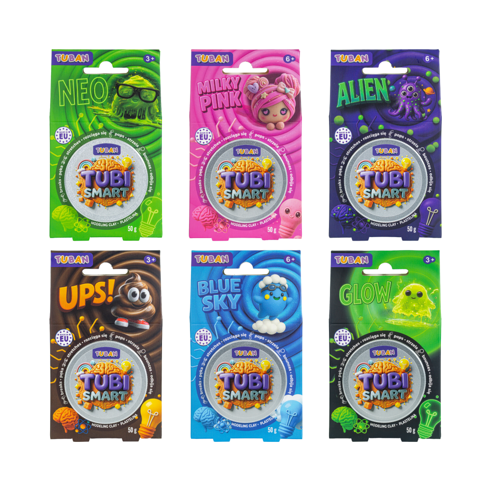 Display + 24 ks Tubi Smart modelovacia hmota 50 gDisplay plný kreatívnej zábavy s modelovacou hmotouKartónový display obsahuje 24 ks modelovacej hmoty Tubi Smart s hmotnosťou 50 g v rôznych farebných prevedeniach. Táto jedinečná hmota ponúka deťom nekonečné možnosti tvorenia a objavovania nových spôsobov hry.Čo obsahuje display?24 ks modelovacej hmoty Tubi Smart (50 g)mix rôznych farieb pre pestrú a kreatívnu hruZábava, ktorá nikdy nekončíTubi Smart je výnimočná modelovacia hmota, ktorá:sa naťahuje, praská a odrážaumožňuje nekonečné miesenie a tvarovanieponúka stále nové spôsoby hry a experimentovaniaDeti môžu vytvárať vlastné tvary, skúšať rôzne textúry a objavovať jedinečné vlastnosti hmoty pri každom hraní.Zmysluplná hra pre rozvoj detíModelovacia hmota podporuje:jemnú motorikukreativitu a fantáziuzmyslové vnímaniekoordináciu ruka–okoHra je prirodzená, uvoľňujúca a zároveň rozvíjajúca.Praktické použitiePo skončení hry stačí hmotu uložiť späť do uzatvárateľného kelímka, aby si zachovala svoje jedinečné vlastnosti čo najdlhšie. Display je ideálny na predaj, vystavenie aj jednoduché dopĺňanie zásob.Prečo si ju deti zamilujú?zábavné praskanie a naťahovaniemnožstvo farebných variantovnekonečné možnosti tvoreniaideálne na doma aj do škôlky
