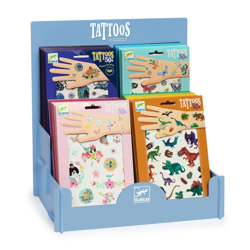 Display pre dočasné tetovačkyB2B prezentačný stojan pre dočasné tetovačkyDrevený display pre dočasné tetovačky je ideálnym riešením pre estetickú, prehľadnú a atraktívnu prezentáciu malých produktov v kamenných predajniach. Kompaktný a pevný stojan s dvoma úrovňami poskytuje jasnú a vizuálne príťažlivú plochu, kde je možné vystaviť až 40 tetovačiek, čím prirodzene láka zákazníkov a podporuje impulzné nákupy. Jednoduchá montáž dvoch drevených úrovní umožňuje rýchlu prípravu displaya a vytvára prehľadný, tematický predajný priestor. Stabilná drevená konštrukcia pôsobí profesionálne a odolne, zvyšuje viditeľnosť produktov a podporuje efektívny merchandising kolekcie dočasných tetovačiek.Materiál a rozmeryMateriál: drevoŠírka: 33,5 cmVýška: 37,5 cmHĺbka: 22 cmObchodná podmienkaDisplay je poskytovaný bezplatne pri objednávke produktov značky Djeco v minimálnej hodnote 150 € bez DPH.