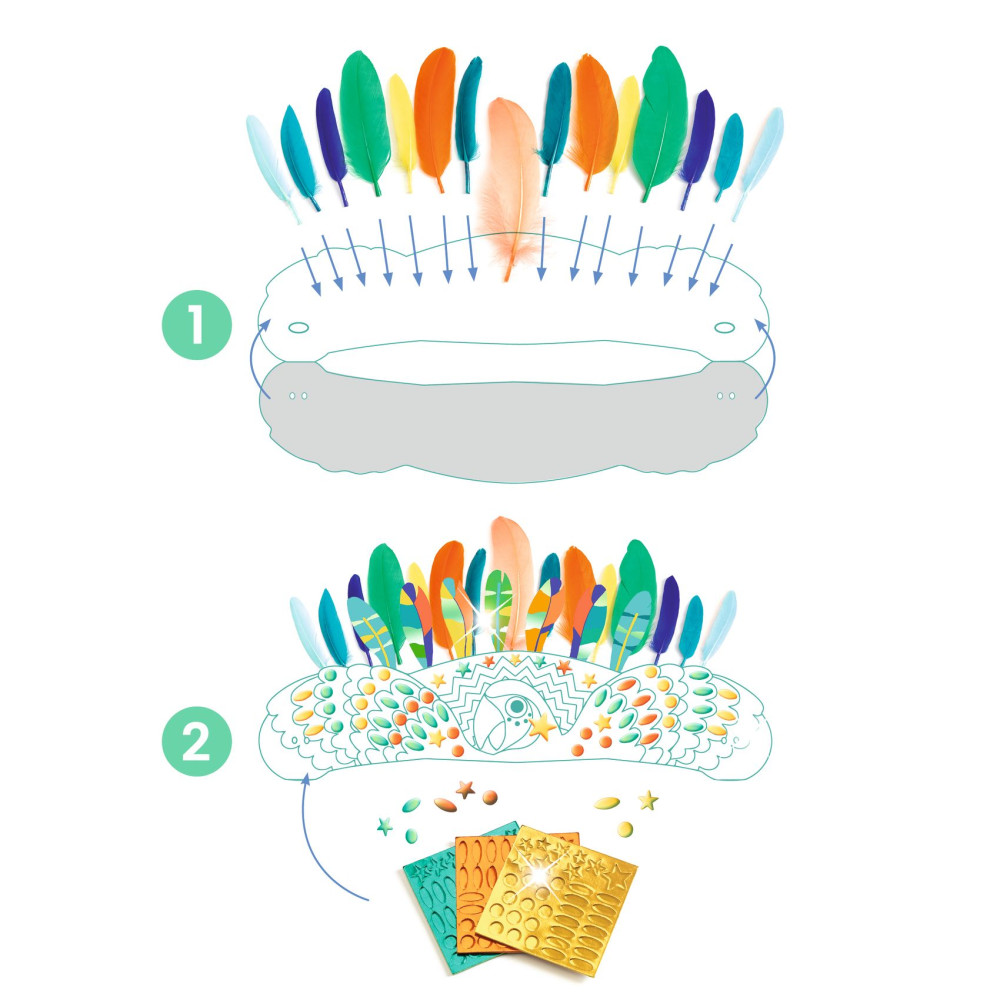 DIY Kreatívna súprava Rio čelenka je parádny set na výrobu slávnostnej čelenky. Textilná čelenka má vo vnútri samolepiacu plôšku, do ktorej deti ukladajú farebné pierka. Po uzavretí čelenky sa predná časť dozdobí metalickými mozaikovými nálepkami podľa predtlačených farebných liniek. Výsledok je efektný doplnok na oslavu, karneval či tematickú hru.Rýchly prehľad odporúčaný vek: od 5 rokov rozvíja: kreativitu, jemnú motoriku, cit pre detail výsledok: tropická čelenka s pierkami a lesklými detailmi. Ako sa s tým tvorí? Otvor čelenku a poukladaj pierka na samolepiacu časť. Čelenku uzavri a upevni. Dozdob prednú časť metalickými nálepkami podľa návodu.Obsah balenia 1× textilná čelenka so samolepiacou plôškou 15× farebné syntetické pierko + 7× ilustrované pierko s metalickým efektom 3× hárok penových mozaikových nálepiek 1× široká plochá gumička 1× návod krok za krokom. Technické parametre vek: od 5 rokov materiál: textil, papier/kartón, pierka, nálepky