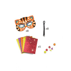 Keď ťa baví karneval, masky alebo hra na nejaké zviera, tak pomocou DIY sady Masky – Zvieratá džungle si môžeš vyrobiť až 8 rôznych masiek na oči. Masky sú z ohybného kartónu s výrezmi na oči. Netreba nič vyfarbovať, masky už majú potlač, stačí na biele miesta dolepiť mozaikové nálepky. Nálepky majú metalický vzhľad, čím dodajú maskám nápadný, efektný lesk. Na záver uviažeš na okraje masky gumku a môžeš si ju nasadiť na oči.