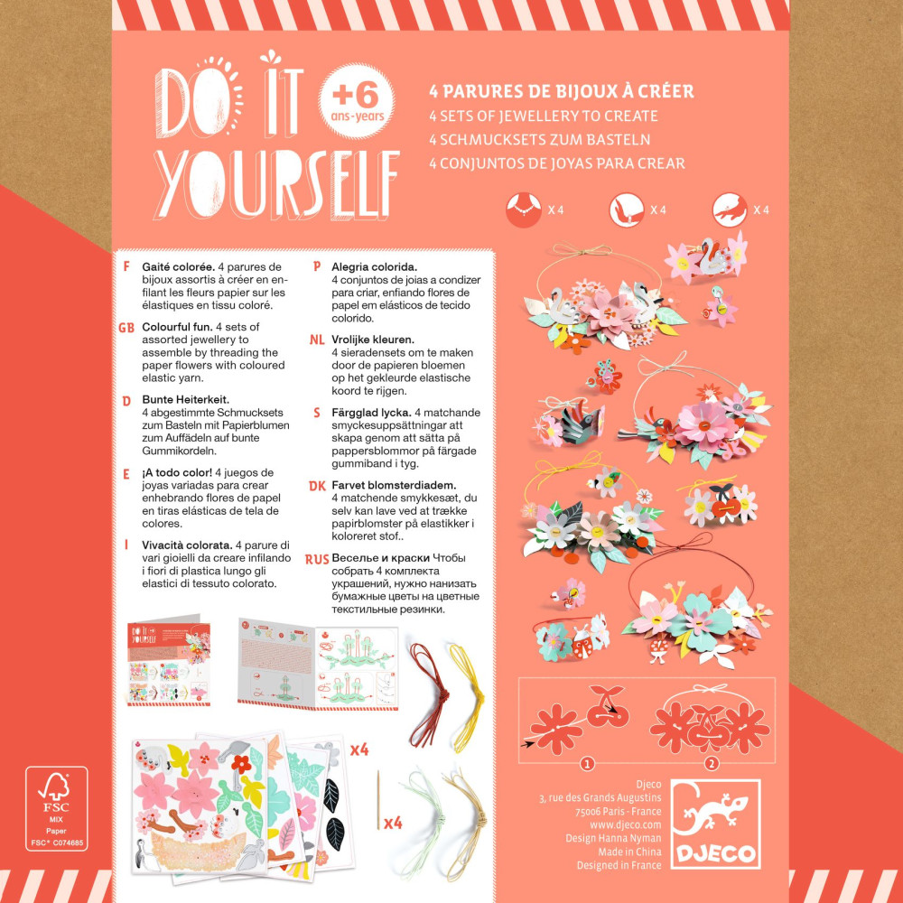 DIY Vyrob si sám Farebná zábava je kreatívna sada na výrobu papierovej bižutérie v sviežom kvetinovom štýle.Deti si postupne poskladajú 4 ladiace sety šperkov – každý set obsahuje náhrdelník, náramok a prsteň.Papierové dieliky sú predierované a očíslované, takže dieťa len navlieka prvky v správnom poradí na elastické šnúrky.Keď je šperk hotový, číslovanie „zmizne“ a zostane len krásny, farebný výsledok s jemným leskom.Rýchly prehľad odporúčaný vek: od 6 rokov rozvíja: jemnú motoriku, sústredenie, trpezlivosť, cit pre farby v balení: 4 očíslované hárky s dielikmi, 12 elastických šnúrok, návod? Prečo si ju deti zamilujú výsledok vyzerá „dospelácky“ – šperky sa dajú naozaj nosiť jednoduchý postup – navliekanie podľa čísel bez stresu ideálne aj na spoločné tvorenie – vzniknú 4 sety na zdieľanie trénuje presnosť a koordináciu – malé dieliky, veľký efektAko to funguje Vylúpni (oddeľ) potrebné papierové dieliky z hárkov. Vyber elastickú šnúrku a navliekaj dieliky podľa čísel v správnom poradí. Po navlečení šnúrku zaviaž a uprav dĺžku podľa potreby. Hotové šperky skombinuj do setu: náhrdelník + náramok + prsteň.Obsah balenia 4× hárok s predierovanými dielikmi (očíslené pre jednoduché skladanie) 12× elastická šnúrka 1× obrázkový návod krok za krokom. Technické parametre materiál: papier/kartón, elastická šnúrka počet setov: 4 (náhrdelník, náramok, prsteň) rozmery balenia: cca 20 × 20 × 3,5–4 cm