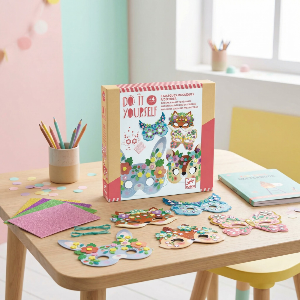 DIY Vyrob si sám – Zvieracie škrabošky je kreatívna sada, v ktorej deti ozdobia 8 masiek zvieratiek pomocou metalických mozaikových samolepiek z peny.Stačí vybrať masku, nalepiť dieliky podľa farebných pokynov a pripevniť gumičku – hotovo, kostým je pripravený na oslavu, karneval či hranie sa doma.Rýchly prehľad odporúčaný vek: od 4 rokov počet masiek: 8 (približne 16 × 12 cm) efekt: trblietavé/metalické mozaiky pre výrazný vzhľad rozvoj: jemná motorika, trpezlivosť, práca podľa predlohy materiály: papier a kartón s certifikáciou FSC. Obsah balenia 8 vytlačených masiek 8 gumičiek 5 hárkov metalických penových mozaikových samolepiek 1 farebný návod krok za krokom. Ako to funguje? Vyber si masku a pozri si farebné pokyny v návode. Odlep mozaikové samolepky a nalep ich na označené miesta. Po dokončení pripevni gumičku. Masku si nasaď a zahraj sa na zvieratko.Pre koho je na detské oslavy a tvorivé aktivity vo viacerých deťoch (8 masiek v balení) pre deti, ktoré milujú karneval, rolové hry a zvieratká pre rodičov, ktorí chcú tvorenie bez farieb a veľkého neporiadku
