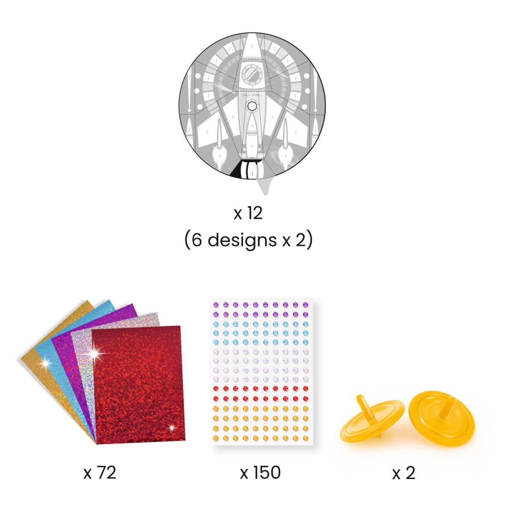 DIY – Vytvor si sám: Hypno CosmosKreatívna sada na výrobu trblietavých točiacich sa kvietkovS kreatívnou sadou DIY – Hypno Cosmos od Djeco si deti môžu vytvoriť dva jedinečné točiace sa kvietky s farebnými efektmi. Vďaka kombinácii lepenia, fóliovania a dekorovania trblietavými kamienkami vzniknú kvietky, ktoré sa pri roztočení nádherne lesknú.Čo všetko deti vytvoria:2 dizajnové kvietky12 kartónových diskov so samolepiacimi plochami72 farebných hárkov – vytvárajú krásne farebné efekty150 samolepiek diamantov1 obrázkový návod krok za krokomPo dokončení získajú deti kvietky, ktoré sa pri točení nádherne lesknú a menia farby podľa uhla svetla.Prečo si vybrať túto kreatívnu sadu od Djeco:jednoduchý obrázkový návodrozvíja tvorivé schopnosti a predstavivosť počas zábavného procesukvalitné materiály od značky Djecoideálny darček pre deti od 6 rokov