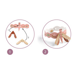 S kreatívnou sadou DIY – Šperky Slečny Pinka ružová od značky Djeco si deti môžu vytvoriť elegantnú kolekciu šperkov, ktorú môžu nosiť alebo vystavovať. Táto tvorivá aktivita kombinuje lepenie, prenášanie motívov a spájanie dielikov do hotových módnych doplnkov a zároveň rozvíja zručnosť a kreatívne myslenie.Čo všetko si deti vytvoria? S touto sadou si deti vyrobia 4 efektné kusy bižutérie:Náhrdelník s krásnymi motívmi a detailmi. Náramok, ktorý ladí s ostatnými šperkami. Brošňa s bezpečnostným uzáverom. Ozdoba do vlasov pre parádny účes. Každý šperk je z umelej kože a doplnený o saténové stužky, gumky, korálky či strapce. Dieliky sa dotvárajú pomocou ilustrovaných obtlačkov, ktoré sa ceruzkou pretlačia na povrch. Po dokončení sa jednotlivé diely spoja pomocou uzáverov a doplnkov podľa obrázkového návodu. Sada obsahuje aj dekoratívny stojan v tvare stromu z pevnej lepenky, na ktorý si deti môžu svoje šperky zavesiť a pekne vystaviť.Čo deti pri tvorení rozvíjajú:jemnú motoriku pri dotváraní drobných detailov, sústredenie a trpezlivosť, estetické cítenie a cit pre farby, tvorivosť a radosť z vlastnoručne vyrobených doplnkov. Prečo si vybrať túto kreatívnu sadu:kompletná DIY sada s hotovými šperkami, vhodná aktivita pre deti od 6 rokov, kvalitné materiály a ilustrácie typické pre Djeco, obrázkový návod krok za krokom, výsledné šperky sú použiteľné pri hre aj skutočne nositeľné, stojan na vystavenie hotových výrobkov