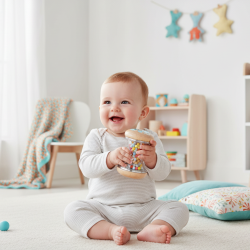 Drevená hrkálka Medvedík je milá a nadčasová hračka pre najmenších. Ľahko sa drží, podporuje úchop a pri pohybe vydáva príjemný hrkavý zvuk.Rýchly prehľad rozvíja: úchop, koordináciu ruka–oko, zmyslové vnímanie odporúčaný vek: od 3 mesiacov materiál: drevo motív: medvedík. Ako sa s ňou hrá- Podaj hrkálku do ručičky alebo ju jemne zatras. Nechaj dieťa objavovať zvuk a pohyb. Využi pri hre na brušku alebo v kočíku.