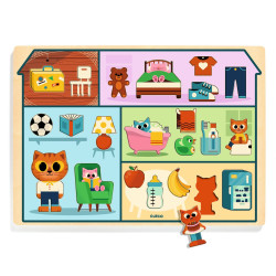 Drevené edukačné puzzle Dom Objavuj miestnosti v dome a uč sa hrouDrevené edukačné puzzle Dom je vkladacie puzzle z dreva, ktoré deťom pomáha spoznávať jednotlivé miestnosti v dome a ich využitie. Dieťa vkladá dieliky na správne miesto a postupne objavuje, čo všetko sa v dome nachádza.Každý dielik je prispôsobený malým detským rukám a ľahko sa uchopuje. Puzzle podporuje jemnú motoriku, logické myslenie a rozvíja slovnú zásobu, keď sa deti učia pomenovávať miestnosti a predmety.Pre koho sú vhodné: odporúčaný vek: od 2 rokovObsah balenia drevená puzzle doska vkladacie dieliky