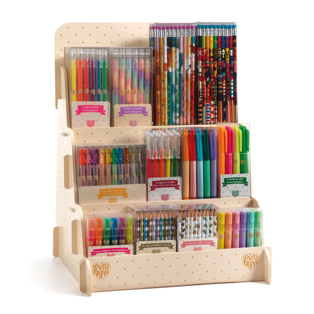 Drevený display na produkty Lovely PaperB2B drevený prezentačný stojan pre Lovely Paper DjecoElegantný drevený display pre kolekciu Lovely Paper je navrhnutý na štýlovú a prehľadnú prezentáciu písacích potrieb priamo na predajnej ploche. Jemný dizajn prirodzene ladí s kreatívnym charakterom značky Djeco a pomáha vytvoriť atraktívny predajný priestor. Display je ideálny na vystavenie produktov z kategórie písacích potrieb, pričom zabezpečuje prehľadné usporiadanie sortimentu a jednoduchý prístup pre zákazníkov. Kompaktné rozmery umožňujú jeho umiestnenie aj v menších predajniach alebo na pultoch. Vyrobený je z FSC® certifikovaného dreva, čím podporuje ekologický a zodpovedný prístup. Stabilná konštrukcia zabezpečuje reprezentatívny vzhľad a dlhodobú životnosť pri každodennom používaní.Materiál a rozmeryMateriál: FSC® certifikované drevoŠírka: 34,5 cmVýška: 36 cmHĺbka: 22,5 cmvhodný pre kamenné predajneObchodná podmienkaDisplay je poskytovaný bezplatne pri objednávke produktov značky Djeco v minimálnej hodnote 200 € bez DPH.