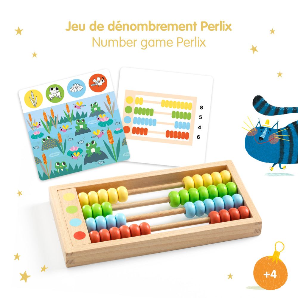 Edukačná hra: počítanie do 10 pomocou počítadlaZábavná edukačná hra pre prvé počtyPerlix – Počítanie do 10 pomocou počítadla je vzdelávacia hra od značky Djeco, pomocou ktorej sa deti hravou formou učia počítanie od 1 do 10. Na obojstranných kartách sú pestré obrázky rôznych prvkov, ktoré dieťa najprv spočíta, a potom výsledok vyznačí na drevenom počítadle.Prečo si vybrať počítadlo od Djecovhodná pre deti od 4 rokovučí deti počítanie do 10 hravou formoupestré ilustrácie a farebné prvky dávajú počtom významdrevené počítadlo pre praktické precvičovanieČo dieťa rozvíjalogické a matematické myslenieschopnosť počítať a porovnávať množstvápozorovanie a koncentráciujemnú motoriku pri manipulácii s guľôčkamiradosť z úspechu pri riešení úlohObsah baleniadrevené počítadlo so 4 radmi farebných guľôčok20 obojstranných kariet so zadaním úloh a správnymi riešeniami