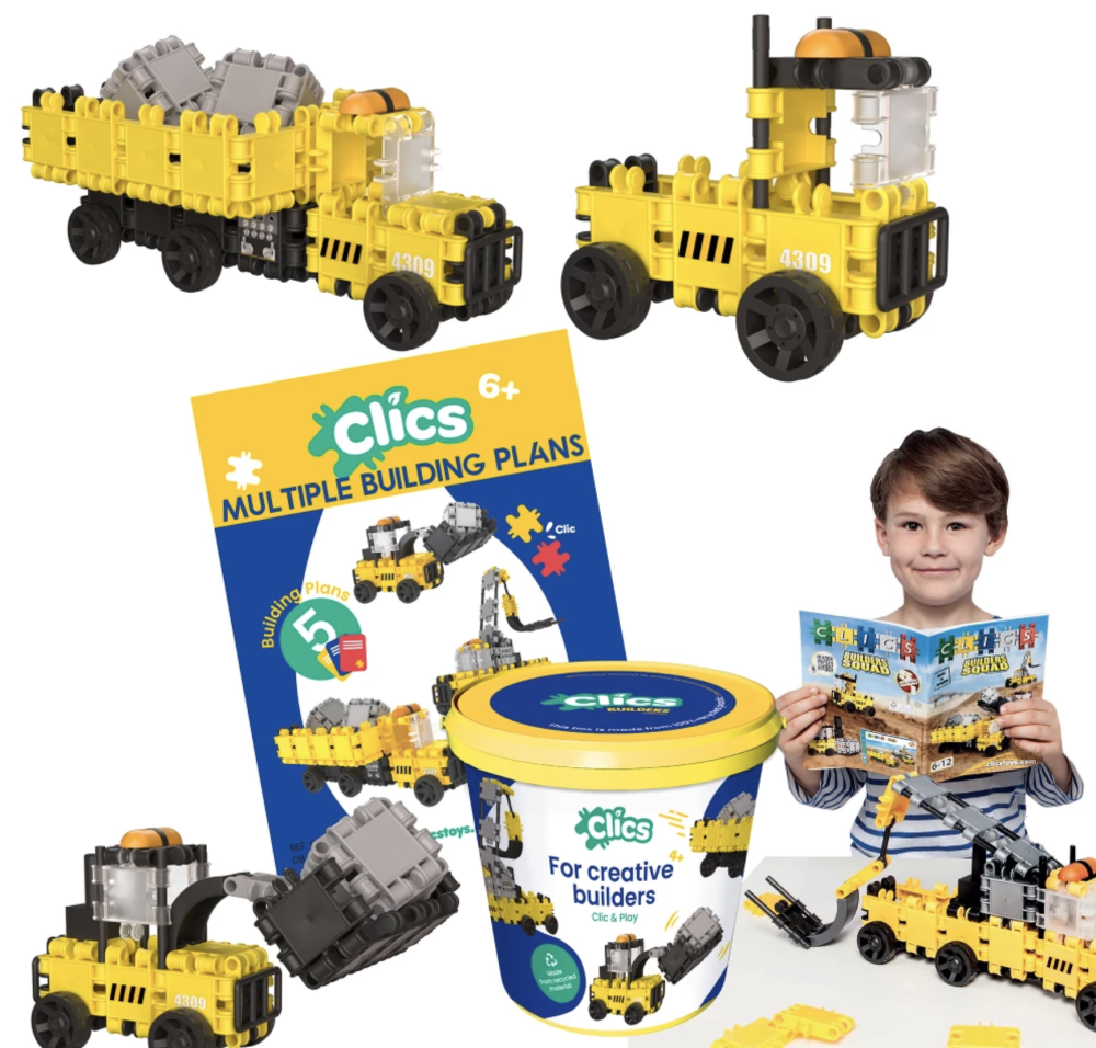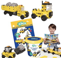 Konštrukčná stavebnica Clics Stavba rozvíja jemnú motoriku, koordináciu ruka-oko aj kreativitu a podporuje hru s otvoreným koncom. Jedná sa o jedinečnú STEM montessori hračku. Je pevná a umývateľná. Stavebnica Clics sa vyrába v Belgicku z recyklovaného plastu, rovnako ako všetok použitý plastový obalový materiál. Značka Clics Toys tak redukuje svoju karbónovú stopu až o 90%. Stavebnica Clics je vhodná pre deti od 4 rokov a je skvelá ako originálny darček pre deti k narodeninám aj Vianociam.