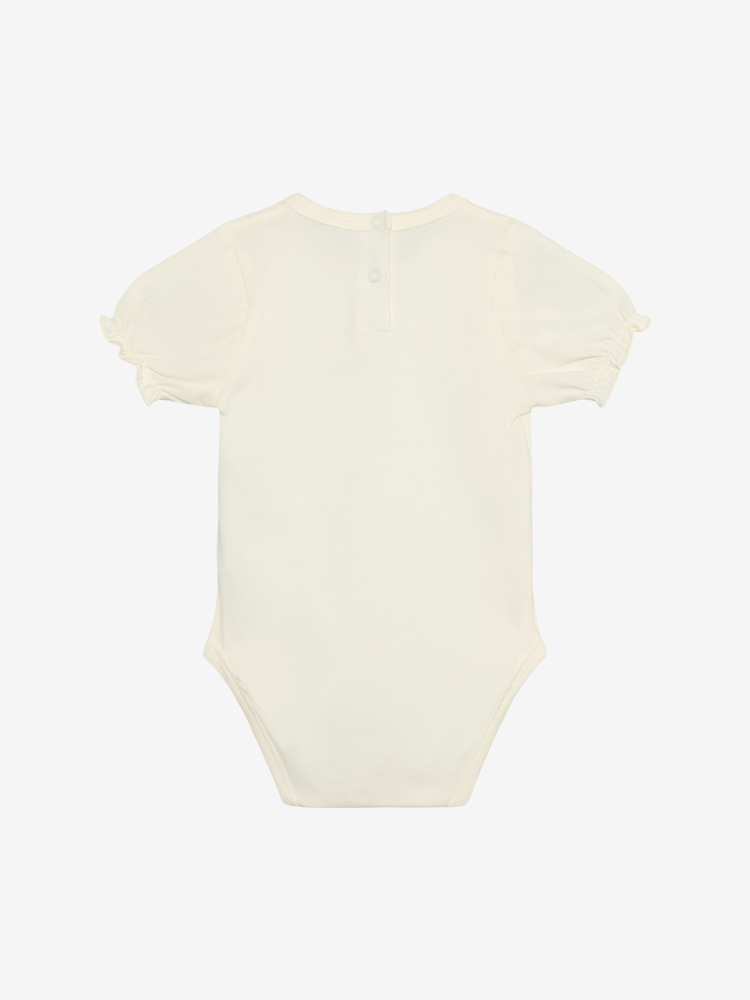 Body od EN FANT. Toto body má na hrudi efekt riasenia s výšivkou a na konci rukáva elastiku. Toto body sa dá otvoriť praktickými patentkami na ramene a medzi nohami.