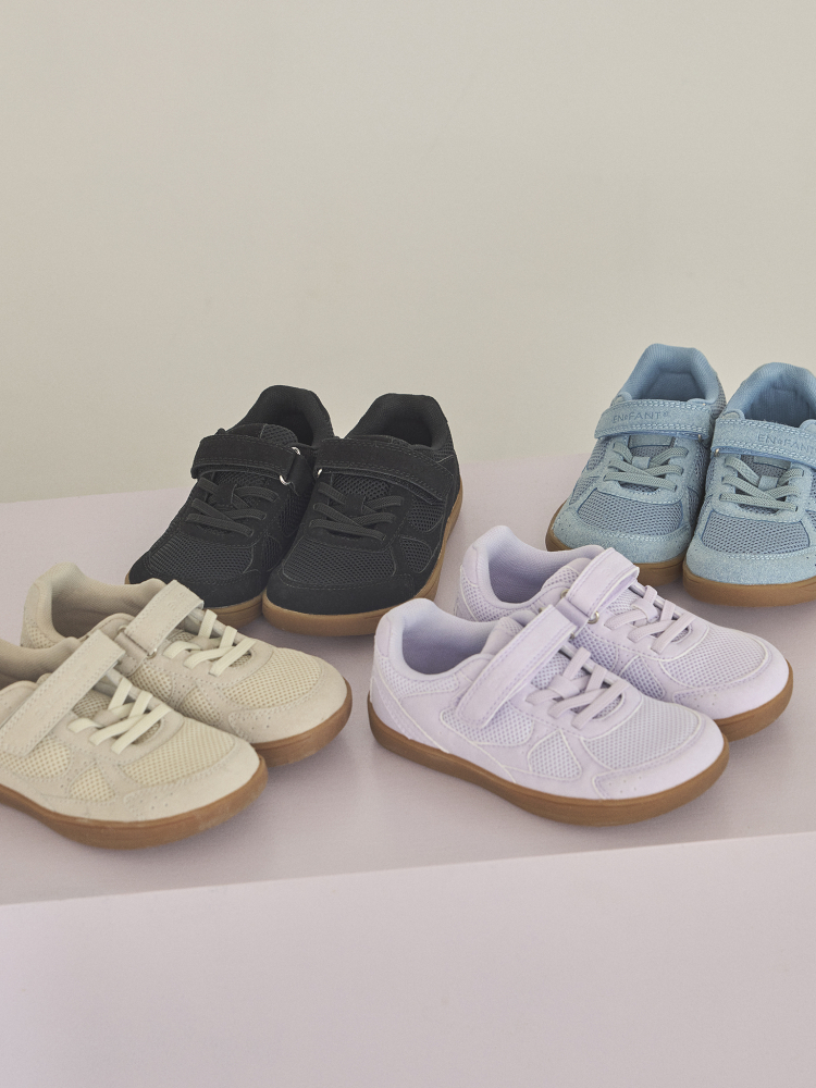 Tenisky sa zapínajú dvoma suchými zipsami. Odporúča sa 1 cm priestoru na rast.