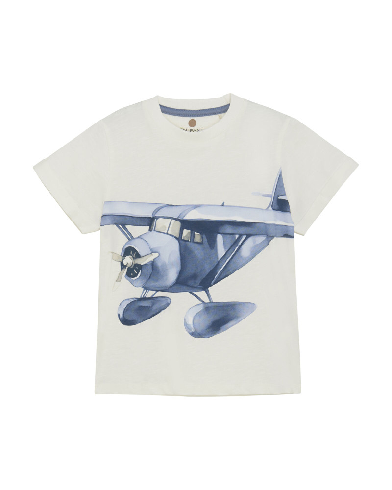 Chlapčenské biele tričko s lietadlom En Fant.