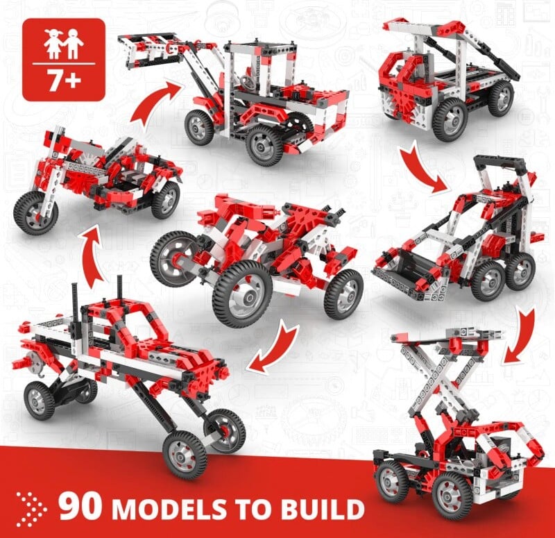 Rozvoj kreativity je hlavným zameraním tejto série, od 10 modelov až po 120 modelov! Všetky naše sady od 30 modelov a vyššie obsahujú nový 2-rýchlostný motor ENGINO pre animované stavby, od áut cez žeriavy až po dinosaury a helikoptéry. Jediným limitom je fantázia dieťaťa!