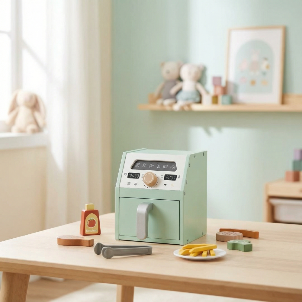 Malí kuchári môžu konečne „vypražiť“ svoje obľúbené hranolky! Táto drevená fritéza pre deti je skvelým doplnkom do každej detskej kuchynky a prinesie do hry novú dávku fantázie. Deti môžu napodobňovať varenie ako v reštaurácii, rozvíjať svoju predstavivosť a zručnosť, učiť sa spolupracovať a komunikovať s ostatnými pri spoločnom varení.Hra, kde sa z detí stávajú malí šéfkuchár
