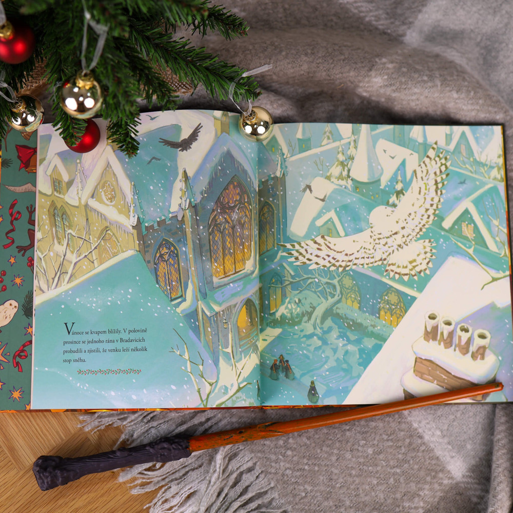 Harry Potter: Vánoce v Bradavicích „Vánoce se kvapem blížily. V polovině prosince se jednoho rána v Bradavicích probudili a zjistili, že venku leží několik stop sněhu.“ Tak začíná dvanáctá kapitola série o Harrym Potterovi, která učarovala milionům čtenářů po celém světě. Prožijte s mladým kouzelníkem jeho první Vánoce v Bradavicích! Nádherné ilustrace vás zavedou do slavnostně vyzdobené Velké síně, útulné společenské místnosti Nebelvíru, na zasněžené školní pozemky i na další místa plná sváteční atmosféry. Čeká vás nefalšovaná magie Vánoc…