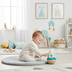 Hojdacia hrkálka Tučniačik sa pri dotyku rozhojdá a jemne hrká. Dieťa skúša opakovať pohyb, sleduje kývanie a objavuje zvuk – ideálna zmyslová hračka na rozvoj pozornosti a koordinácie.Rýchly prehľad efekt: hojdanie + jemné hrkanie odporúčaný vek: od 10 mesiacov rozvíja: koordináciu ruka–oko, zmysly, pozornosť motív: tučniačik. Ako sa s tým hrá- Ukáž bábätku hračku a jemne ju rozhýb. Nechaj dieťa skúšať dotykom vyvolať kývanie. Striedaj tempo – podporíš zvedavosť aj sústredenie.Technické parametre typ: hojdacia hrkálka použitie: hra na podložke