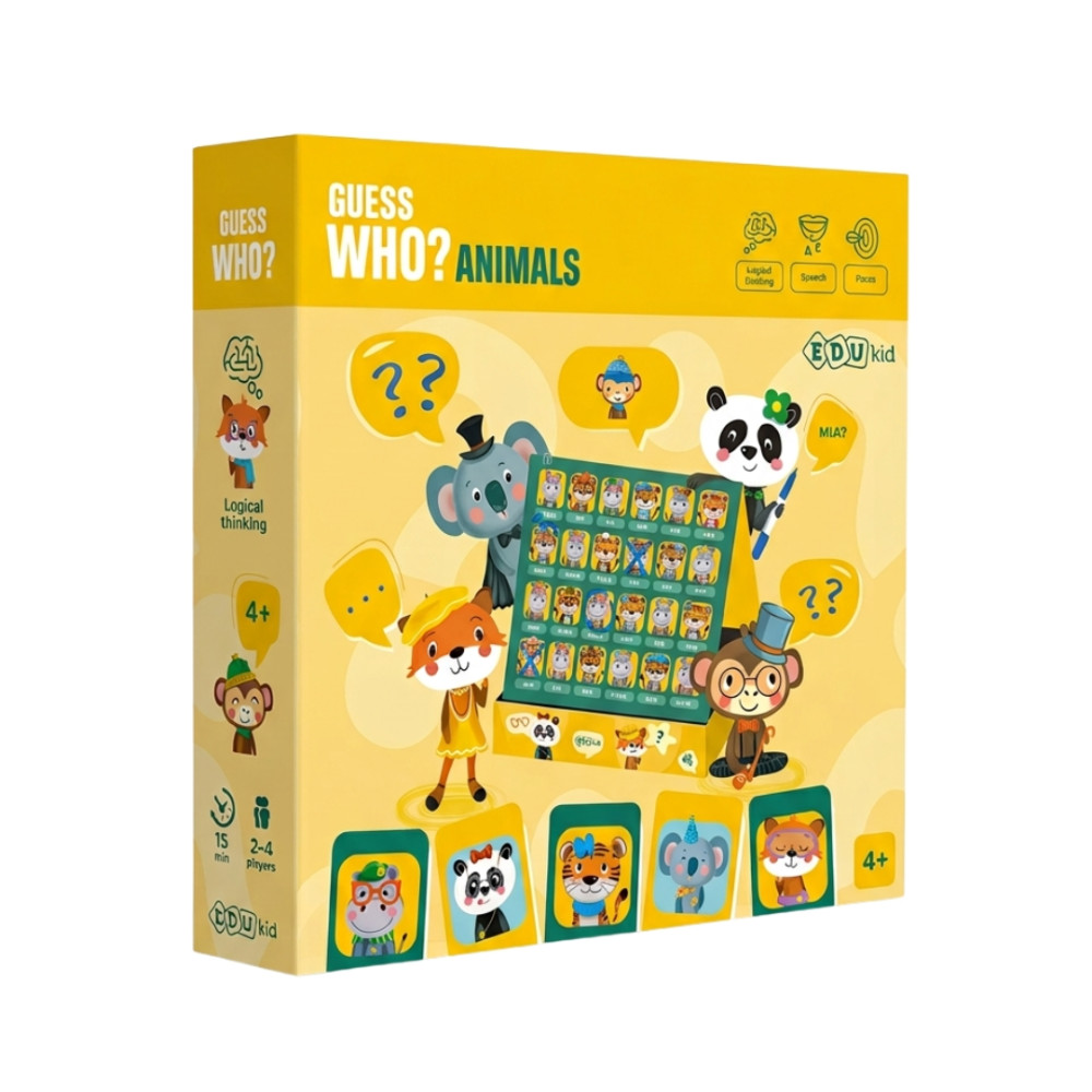 Hra Hádaj kto? Zvieratká je zábavná spoločenská hra pre deti aj dospelých, v ktorej hráči pomocou chytrých otázok odhaľujú, akú postavičku si vybral súper. Hra rozvíja logické myslenie, pozornosť, porovnávanie detailov aj slovnú zásobu, preto je skvelou voľbou na rodinné hranie doma aj na spoločné chvíle s deťmi.