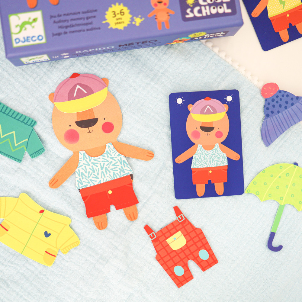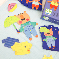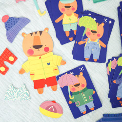 Deti sa pritom výborne zabavia, učia sa pomenúvať farby, počasie a oblečenie, a popritom si ani nevšimnú, že trénujú pamäť.Obleč tigra podľa počasia!Bude pršať? Potrebuje pršiplášť!