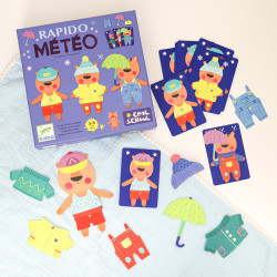 Hra Rapido MeteoZapamätaj si obrázok, popíš ho – a obleč tigra rýchlejšie ako ostatní!Rapido Meteo je svižná a veselá hra, ktorá preverí pozornosť, rýchlosť aj pamäť malých hráčov. Každé kolo začína jednoducho: jeden z hráčov si pozrie kartičku s počasiem a oblečením – a musí ostatným čo najlepšie opísať, čo má tiger mať na sebe. Ostatní hráči počúvajú, zapamätávajú si inštrukcie a rýchlo hľadajú správne kúsky oblečenia. Kto oblečie svojho tigra najrýchlejšie a najpresnejšie, získava bod!Skvelá hra na tréning pamäti, pozornosti a slovnej zásobyHra Rapido Meteo nenápadne rozvíja množstvo dôležitých schopností: