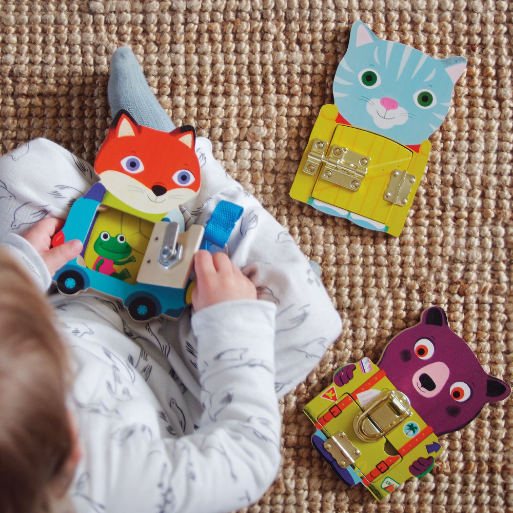 Locktou od značky Djeco je drevená manipulačná hra, v ktorej dieťa skúša otvárať a zatvárať rôzne typy zámkov na troch roztomilých zvieratkách. Každé zvieratko má iný mechanizmus, takže dieťa prirodzene trénuje prsty, koordináciu a sústredenie – presne tak, ako to malé deti baví.Po otvorení „dvierok“ sa objaví obrázok. Skvelá aktivita na pokojné hranie doma, do škôlky aj ako darček.Rýchly prehľad odporúčaný vek: od 3 rokov typ hry: manipulačná / edukačná hra rozvíja: jemnú motoriku, trpezlivosť, logiku pri riešení „ako to otvoriť“ v balení: 3× drevené zvieratko so zámkom, návod. Čo sa deti naučia pracovať s rôznymi mechanizmami (západka, kľúč, posuv) precízny úchop a správny tlak prstov samostatnosť pri každodenných činnostiach (zipsy, gombíky, zámky). Technické parametre materiál: drevo, kovové prvky počet zvieratiek: 3 rozmery balenia: cca 23 × 23 × 4 cm