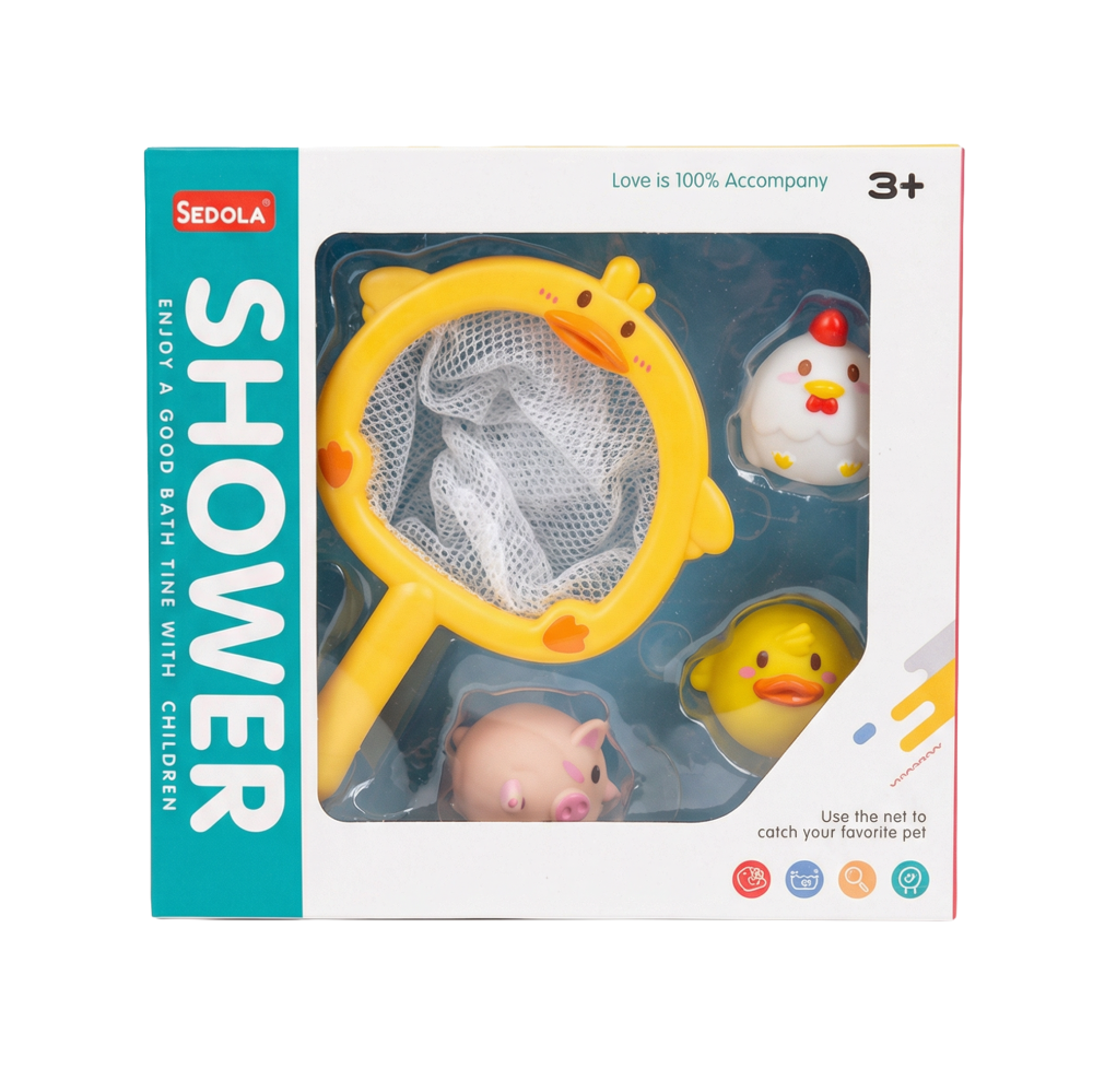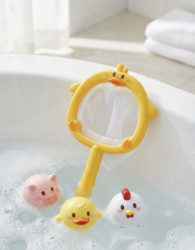 Hračky na potápanie a podberák Farma premenia každé kúpanie na veselú hru so zvieratkami z farmy. V sete nájdete farebný plastový podberák v tvare kačičky a tri plávajúce hračky – kuriatko, kačičku a prasiatko – ideálne na chytanie, potápanie a vymýšľanie vlastných príbehov vo vani alebo bazéne. Mäkký, príjemný materiál hračiek je šetrný k detským rúčkam a ľahko sa udržiava čistý. Deti si pri hre prirodzene rozvíjajú motoriku, koordináciu oko–ruka aj fantáziu, keď sa snažia zvieratká pod vodou nájsť a chytiť do sieťky. Set je vhodný pre deti od 3 rokov a skvele sa hodí ako darček pre všetkých malých milovníkov vody a zvieratiek.