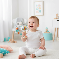 Skôr než dáte dieťaťu do rúk maraku zo série hudobných nástrojov Animambo, môžete ho potešiť hrkálkou BabyMaraki. Veľké ušká navrchu hrkálky znamenajú: tvoriť zvuky hrkálkou neznamená iba držať ju a triasť ňou, ale aj počúvať a prebúdzať hudobný sluch.Drevená rúčka je naspodku rozšírená, vďaka čomu hrkálka aj stojí. Hračka patrí do produktovej série Baby White, ktorá sa vyznačuje jemnými farbami a vyváženou kombináciou čistého dreva a priehľadného plastu.Odporúčaný vek: 3m+Rozmery hračky: 6,7 x 10,7 cm