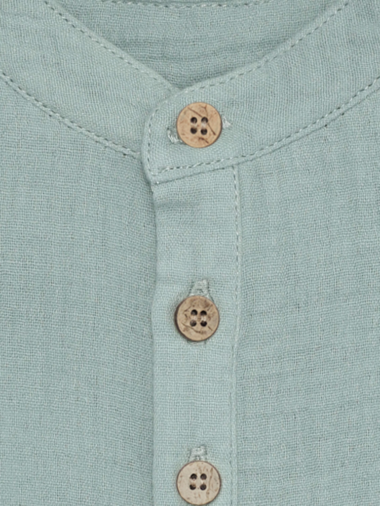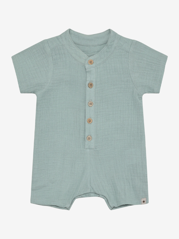 Jednofarebný letný overal od HUTTEliHUT. Má okrúhly výstrih a gombíky. Na spodku má patentky, takže je ľahké ho obliecť a vyzliecť. Certifikovaný podľa OEKO-TEX® STANDARD 100, číslo certifikátu 2276-364 DTI.