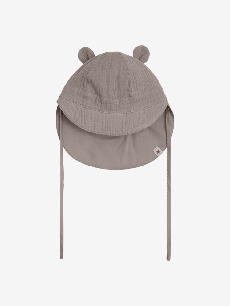 Jednofarebný mušelínový letný klobúk s medvedími ušami na každej strane od HUTTEliHUT. Klobúk je vyrobený zo 100 % bavlny a je dostupný v niekoľkých rôznych farbách. Na každej strane sú šnúrky, ktoré zabezpečujú dobré padnutie. Extra dĺžka vzadu a slnečný štít vpredu. Ideálny na poskytnutie tieňa počas teplého letného dňa. Certifikovaný podľa OEKO-TEX® STANDARD 100, číslo certifikátu 2276-364 DTI.