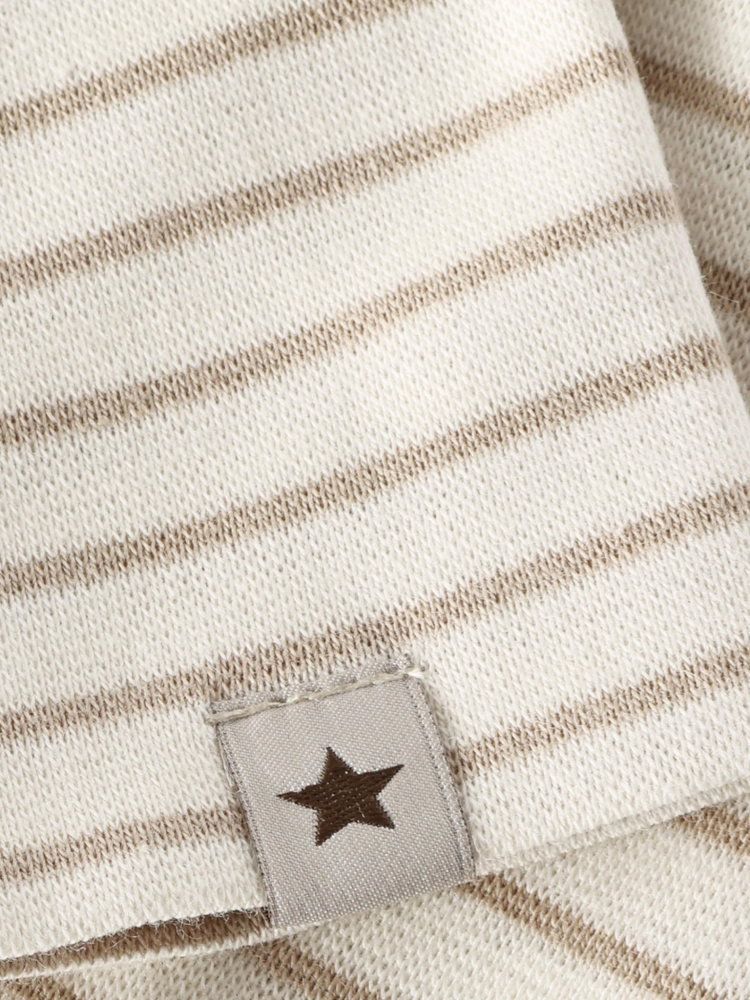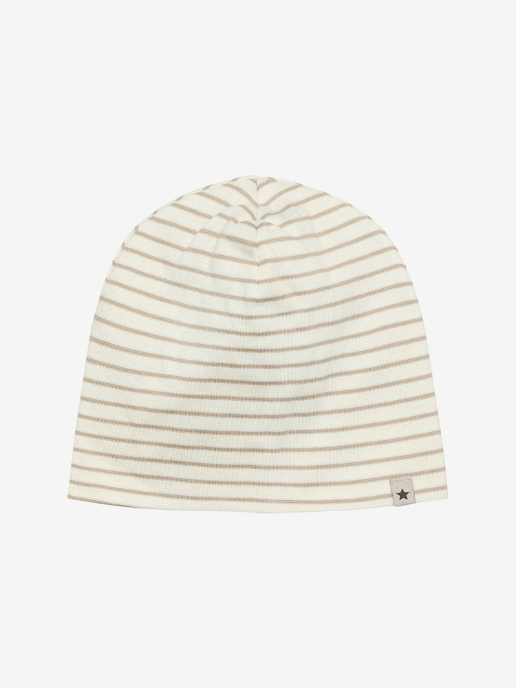 Roztomilá pruhovaná pletená čiapka od HUTTEliHUT. Čiapka je vyrobená z 97 % bavlny / 3 % elastanu, ktorý je pohodlný na dotyk. Na prednej strane má štítok s hviezdou. Certifikovaná podľa GOTS - organické CERES-0366.