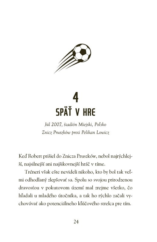 Hviezdy futbalu Lewandowski Od nižších poľských líg až na vrchol BundesligyČo urobíš, keď ťa v sedemnástich rokoch opustí klub a zdá sa, že tvoja futbalová kariéra sa skončila skôr, než začala? Robert Lewandowski to zažil na vlastnej koži — a napriek tomu sa nevzdal. Vlastným úsilím a húževnatosťou sa postupne predral z nižších poľských líg až do nemeckej Bundesligy, kde sa stal jedným z najobávanejších útočníkov Európy. Táto kniha z edície Fragment Hviezdy futbalu ti ukáže, že za každým úspechom sa skrýva príbeh plný odhodlania, tvrdej práce a chvíľ, keď to vyzeralo beznádejne. Ideálne čítanie pre mladých fanúšikov futbalu od 7 rokov.