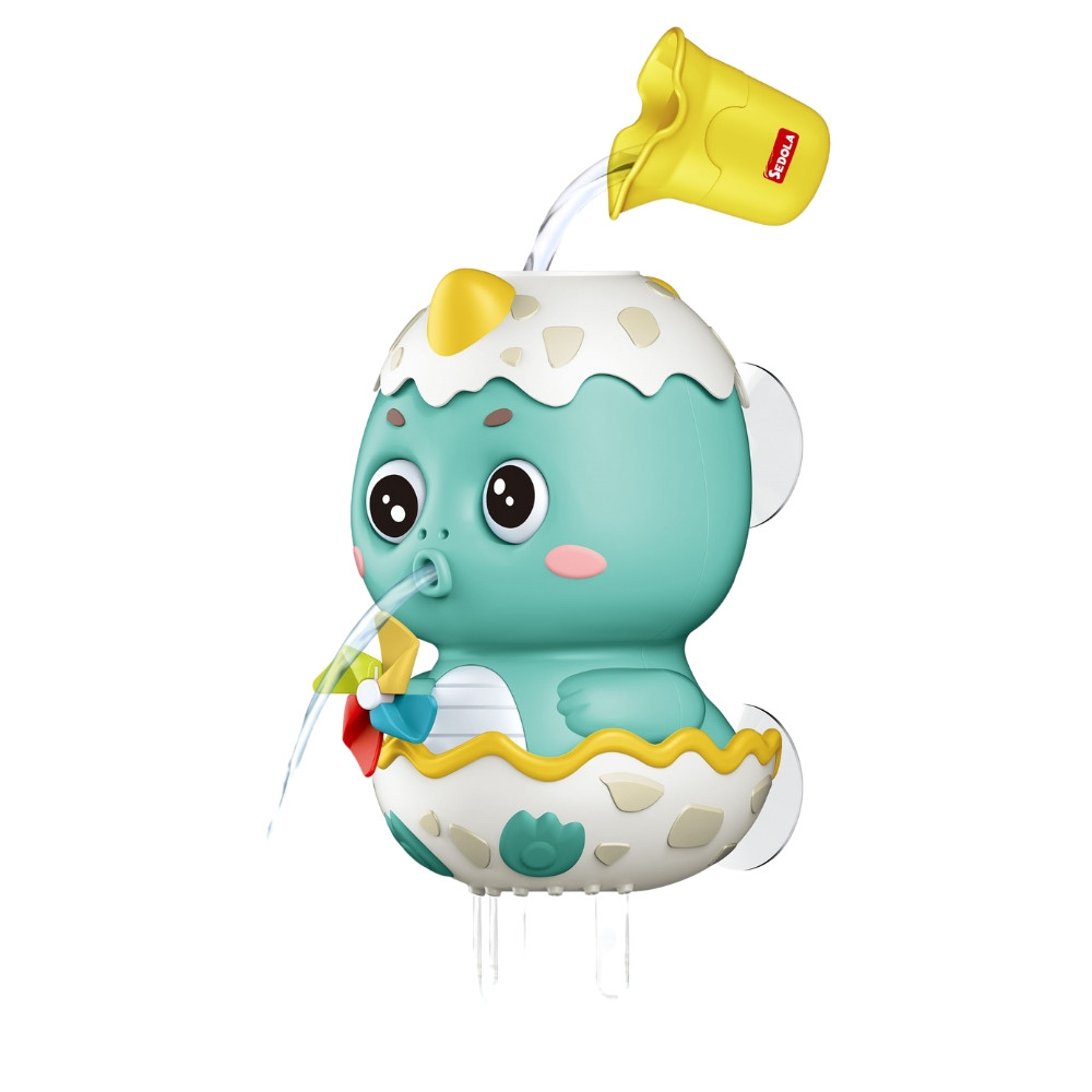 Interaktívna hračka do vane DinoRoztomilý kamarát do kúpeľaInteraktívna hračka do vane Dino je veselý dinosaurus ukrytý v škrupinke vajíčka, ktorý spraví z každého kúpeľa malú vodnú šou a motivuje deti, aby sa do vane tešili. Hračka je navrhnutá tak, aby zaujala už na prvý pohľad – má veľké očká, jemné farby a milý výraz, vďaka čomu si ju deti rýchlo obľúbia. Po naliatí vody do lievika nad hlavičkou sa začína zábava: voda tečie cez vnútro hračky, roztáča farebné koliesko a vytvára jemný vodopád, ktorý vyteká zo spodnej časti vajíčka. Deti môžu vodu nalievať opakovane, sledovať, ako sa mení prúd, a skúšať, čo sa stane, keď lejú rýchlejšie alebo pomalšie. Takýmto spôsobom si prirodzene rozvíjajú jemnú motoriku, koordináciu oko–ruka a učia sa základným princípom príčiny a následku. Dino je vyrobený z kvalitného, hladkého plastu bez ostrých hrán, takže je bezpečný aj pre menšie deti. Jednotlivé časti sú pevne spojené, aby hračka dobre znášala častý kontakt s vodou a každodenné používanie vo vani. Materiál sa ľahko čistí – po kúpaní stačí hračku opláchnuť čistou vodou, nechať odkvapkať a uložiť na suché miesto, čím sa znižuje riziko tvorby nečistôt.
