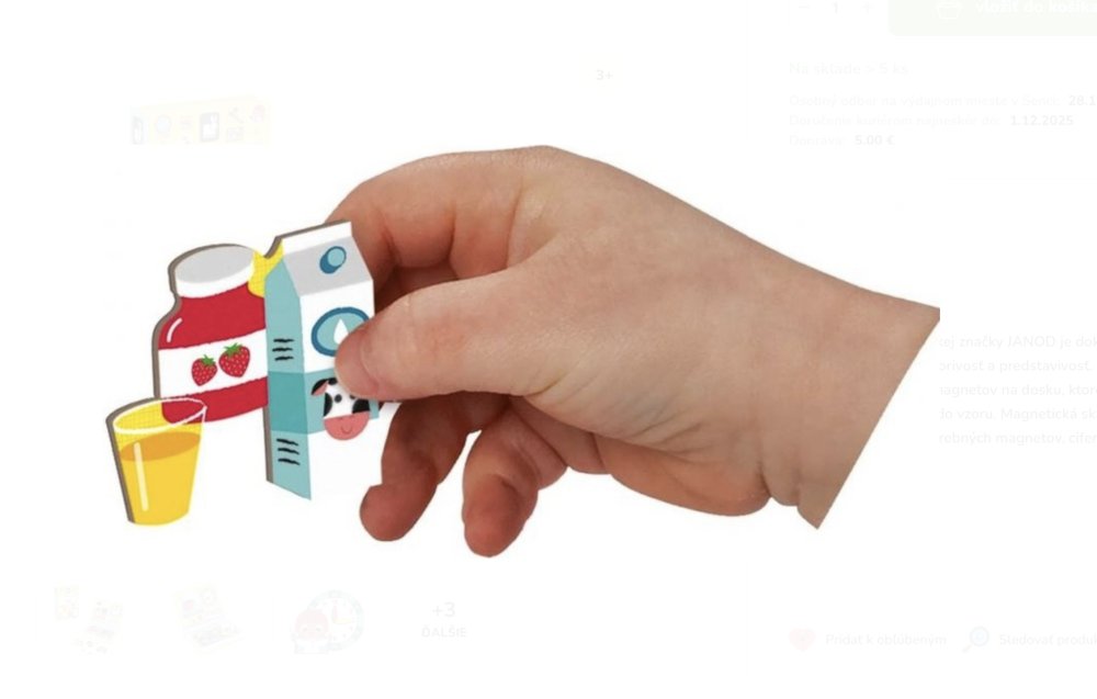 - Magnetická skladačka Hodiny obsahuje 75 farebných magnetov, ciferník a kartičky zobrazujúce aktivity detí, vykonávané v rôznych denných dobách (16 motívov).