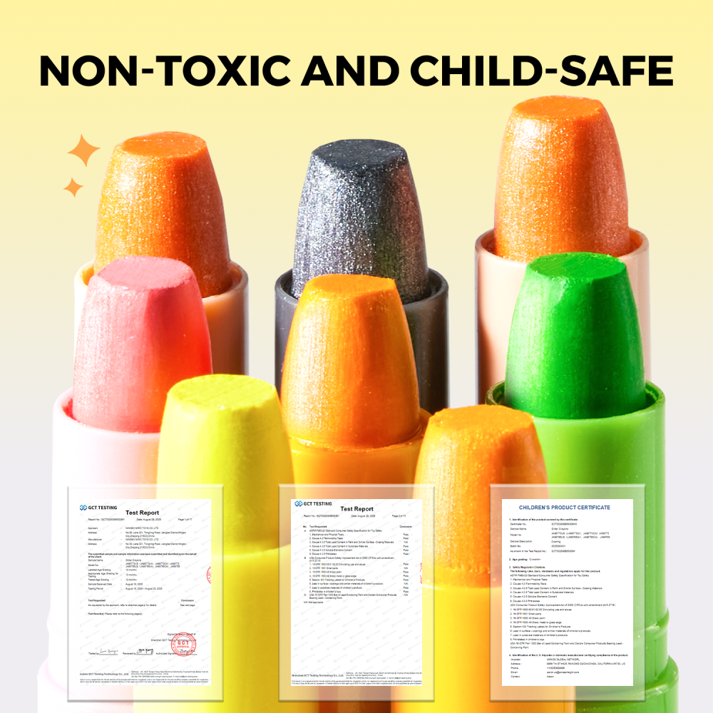 Jemné voskovky Umývateľné Glitter 24 ks Kreslite, tvorte a zabávajte sa – s voskovkami, ktoré milujú deti aj rodičia! Rozžiarte svet svojho dieťatka farbami! Naše jemné umývateľné voskovky trblietavé v praktickom balení 24 kusov prinesú nekonečné možnosti kreatívneho vyžitia – na papieri, ale aj na tvári či tele. Bez tlačenia, bez špiny, iba čistá radosť z tvorenia!Prečo si vaše deti zamilujú práve tieto trblietavé voskovky? Ľahké ako pierko – voskovky sa krásne rozotierajú už pri jemnom dotyku, čo ocení každá detská rúčka.Umývateľné a nezanechávajú škvrny – jednoducho sa dajú zmyť z pokožky aj oblečenia.Bezpečné zloženie – voskovky sú vyrobené z glycerínu a sú zdravotne nezávadné. Ideálne aj na maľovanie na tvár.Praktické puzdro a vysúvací obal – voskovky sa nelámu, sú vždy poruke a ľahko sa uchovávajú.Podporujú rozvoj jemnej motoriky a fantázie – každá čiarka pomáha dieťaťu rásť hravo a tvorivo.24 trblietavých farieb v jednom boxe – aby bolo každé trblietavé umelecké dielo plné života a radosti.
