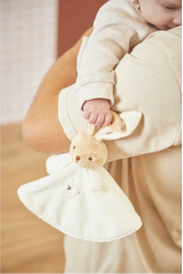 Objavte krémového okrúhleho mojkáčika v podobe zajačika, mäkkého a upokojujúceho spoločníka pre vaše dieťa od narodenia.