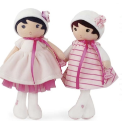 • Na nohách má vyšivku medvedíka Kaloo, vďaka čomu je ešte jedinečnejšia. Meno svojej dcérky môžete napísať na dlhú stuhu na zadnej strane bábiky, aby bola skutočne jedinečná, v Kaloo mysleli aj na praktickosť bábiky a preto ju rovno zabalili do krásneho darčekového balenia.