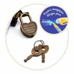 Kendra – tajný zápisník zo série Lovely Paper je denník určený pre zapisovanie detských myšlienok a nápadov. Zápisník je vybavený malým zámkom a dvoma kľúčikmi, takže si môžeš svoje poznámky bezpečne uzamknúť. Sada obsahuje aj čarovné pero s neviditeľným atramentom, ktoré má vo vrchnáku UV svetlo. Jemné ilustrácie na obálke a detaily dodávajú produktu štýl a osobitý charakter.Prečo si vybrať zápisník od Djeco- vhodný pre deti od 8 rokov, uzamykateľný denník so zámkom a 2 kľúčmi, obsahuje kúzelné pero pre písanie aj kreslenie, krásny dizajn z kolekcie Lovely Paper, ideálny na zápisky, tajomstvá či nápady. Obsah balenia- zápisník s obálkou Lovely Paper, čarovné pero (batérie sú súčasťou balenia)zámok + 2 malé kľúčiky
