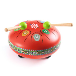 Kovový červený bubon Animambo je intuitívny perkusný nástroj, ktorý umožní deťom ľahko vytvárať rytmy aj jednoduché melódie.Bubon má 8 kovových jazýčkov – každý zodpovedá jednému tónu a je označený tak, aby sa dieťa vedelo rýchlo zorientovať.Hrá sa jemným úderom paličkami na jednotlivé jazýčky; nástroj znie mäkko a harmonicky, preto je vhodný aj na pokojnejšie „hudobné“ chvíle.Pre tichšie hranie je na spodnej strane gumová zátka, ktorá pomáha zvuk utlmiť.Ako to funguje Začni jednoducho: dieťa skúša jednotlivé tóny a strieda údery ľavou/pravou rukou. Hraj podľa kariet: priložené karty s notami ukazujú 4 melódie – tónom zodpovedajú označenia na bubne. Tvor vlastné melódie: kombinovaním tónov dieťa prirodzene rozvíja cit pre rytmus a postupnosť.Obsah balenia 1× kovový jazýčkový bubon (priemer cca 16 cm) s 8 tónmi 2× drevená palička s gumovou koncovkou 2× obojstranná kartička s notami (spolu 4 melódie)Rýchly prehľad odporúčaný vek: od 5 rokov počet tónov: 8 priemer: cca 16 cm praktický detail: gumová zátka na stlmenie zvuku rozvíja: rytmus, sluchové vnímanie, koordináciu oko–ruka, jemnú motoriku