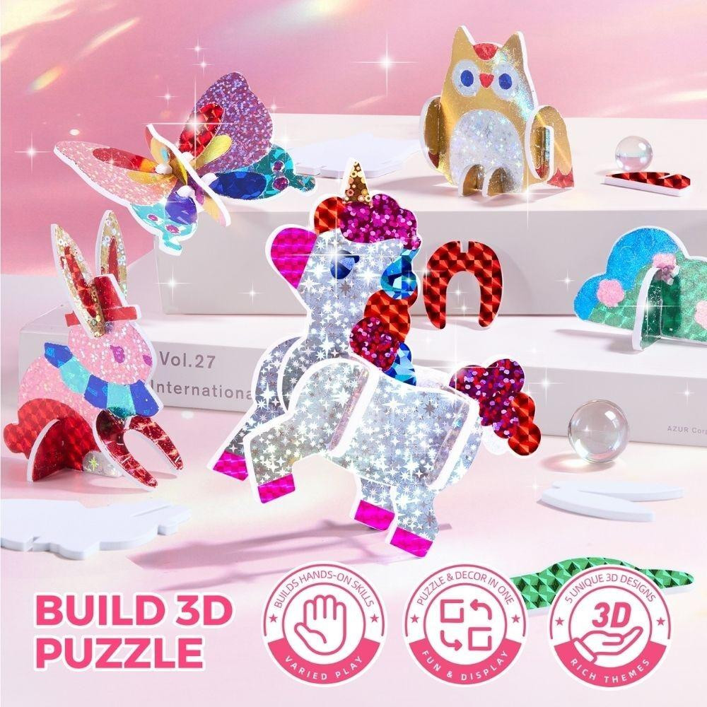 Trblietavá fóliová sada 3 v 1 s vílami, 3D puzzle a magnetickým obliekaním