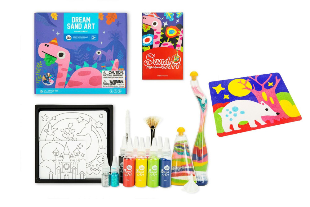 Kreatívna sada s pieskom Čarovná nocVytvorte si originálne obrázky a dekorácie!Objavte kúzlo pieskovej tvorby! Kreatívna sada Čarovná noc od Jarmelo umožňuje deťom vytvárať nádherné farebné obrázky pomocou jemného piesku. Stačí nasypať piesok podľa čísel alebo vlastnej fantázie a každý obrázok ožije trblietavými odtieňmi.Čo nájdete v balení?8 túb s pieskom16 predtlačených predlôh2 štetce2 tuby s trblietkamipraktická umelá nádobka na tvorenieVšetky materiály sú eco-friendly a bezpečné pre deti.Pieskové umenie, ktoré rozvíja tvorivosťpodporuje jemnú motoriku, sústredenie a koordináciu ruka–okodeti sa učia pracovať podľa predlohy aj tvoriť samostatnerozvíja trpezlivosť, presnosť a zmysel pre detailideálne pre tvorivé popoludnia, detské oslavy či ako darčekobrázky majú stojan na zadnej strane – vhodné aj ako dekorácia