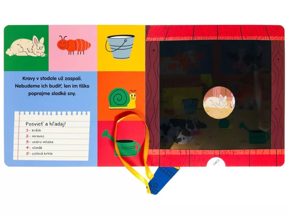 Pomôž farmárovi pomocou baterky v knihe prejsť farmou a skontrolovať zvieratá, skôr než pôjdu spať. Presvieť stránky a zabav sa s kúzelnou baterkou.