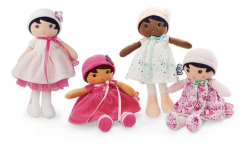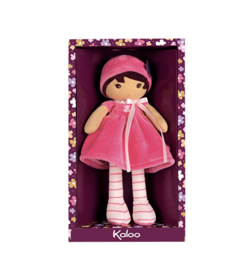 Detská bábika Emma je krásne dievčatko v pekných ružových šatách. Krásna a neodolateľná zároveň, rýchlo sa stane najlepšou kamarátkou vašej malej slečny. Napíšte meno svojej dcérky na dlhú stuhu na zadnej strane bábiky, aby bola naozaj skutočne jedinečná. Emma je krásna bábika, ktorá je vďaka vysokej kvalite vhodná pre deti už od narodenia. Oblečenie bábiky je v nežných farbách s veľkou sukňou ako pre princeznú a s pekným kvetom na klobúčiku. Jemný úsmev a milý pohľad bude vždy nablízku vašej ratolesti, aby ju bábika utešila, keď bude smutná. Na nohách má vyšivku medvedíka Kaloo, vďaka čomu je ešte jedinečnejšia. V Kaloo mysleli aj na praktickosť bábiky a preto ju rovno zabalili do krásneho darčekového balenia. Detská bábika Tendresse má výšku 25 cm a je vyrobená z jemného textilu, ktorý je jemný k detským rúčkam a pokožke. Bábiku je možné prať v práčke.