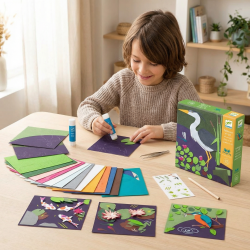 Lepenie 3D obrázkov Pri vode je papierová kreatívna sada, v ktorej deti skladajú a lepia vrstvy tak, aby vznikol krásny 3D efekt.Pomocou presnej pinzety, lepidla a penových samolepiek postupne prikladajú jemne predrezané dieliky na ilustrované podklady.Na záver pridajú drobné prvky cez obtlačky – výsledkom sú 4 živé scenérie pri vode s rôznymi efektmi (napr. perleťové, metalické či reliéfne papiere).Rýchly prehľad odporúčaný vek: 7–12 rokov rozvíja: jemnú motoriku, presnosť, trpezlivosť, priestorové vnímanie v balení: 4 podklady 20 × 20 cm, predrezané papiere, pinzeta, penové samolepky, lepidlo, obtlačky, ceruzka, ochranné hárky, farebný návod. Prečo si ju deti zamilujú vrstvenie vytvára skutočný 3D reliéf, ktorý vyzerá ako malé umelecké dielo predrezané dieliky zjednodušujú prácu – dieťa sa sústredí na skladanie a efekt pinzeta pomáha s maličkými časťami a trénuje presnosť kombinácia papierov s rôznymi povrchmi robí obrázky výrazné a „živé“ Ako to funguje? Vyber podkladový obrázok a priprav si ochranný hárok na pracovnú plochu. Podľa návodu vyber predrezané dieliky a uchop ich pinzetou. Dieliky lepi postupne – na zvýraznenie reliéfu použi penové samolepky. Na záver pridaj drobné ozdoby pomocou obtlačkov a dolaď detaily ceruzkou.Obsah balenia 4× ilustrovaný podklad (20 × 20 cm) 19× hárok predrezaných papierových dielikov 1× pinzeta (presná) 1× hárok penových samolepiek 1× lepidlo (tuba) 1× hárok obtlačkov 1× ceruzka ochranné hárky 1× farebný návod. Technické parametre materiál: papier / kartón, penové samolepky počet obrázkov: 4 rozmer obrázkov: 20 × 20 cm rozmery balenia: cca 21,5 × 21,5 × 4 cm odporúčaný vek: 7–12 rokov