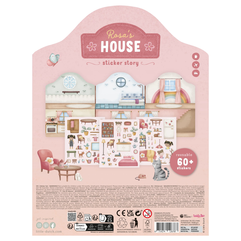 Podporte detskú fantáziu s touto sadou opakovane použiteľných samolepiek Little Dutch. Deti môžu znova a znova vyzdobiť domček Rosy viac ako šesťdesiatimi veselými 3D samolepkami a zakaždým vytvoriť iný príbeh.