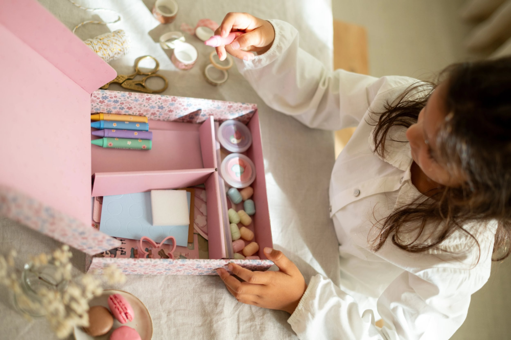 Súčasťou sady sú farebné papiere, omaľovánky, voskovky, farby, penová hmota, pečiatky a samolepky – všetko, čo malé ručičky potrebujú na nekonečnú zábavu. Ideálne pre spoločné tvorenie, objavovanie nových materiálov a rozvíjanie kreativity aj jemnej motoriky.