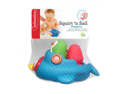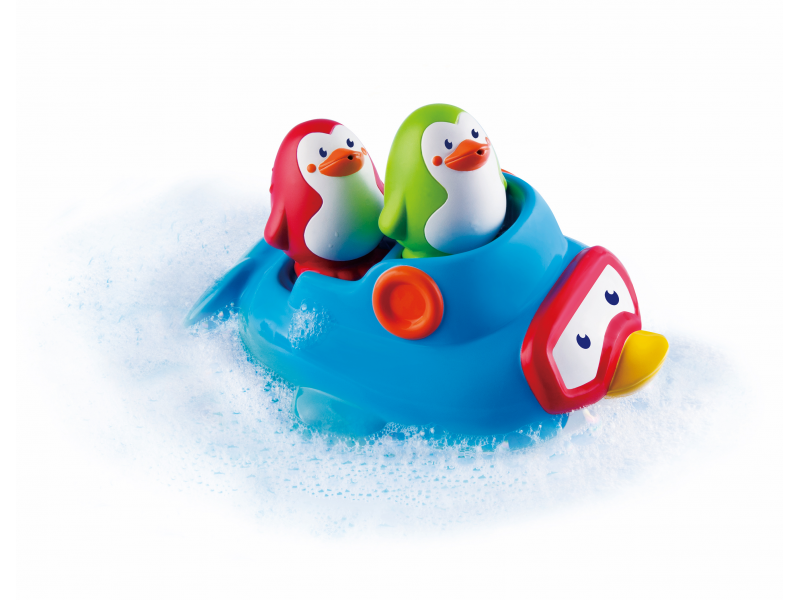 Loďka v podobe maxi tučniaka, ktorý vozí dva malé striekacie tučniaky, je originálna a zábavná hračka do kúpeľa. Vymýšľajte spolu s dieťaťom počas kúpania príbehy o tom, čo všetko tučniaky na svojich výletoch prežívajú a užívajte si spoločne príjemné chvíle pred spaním.